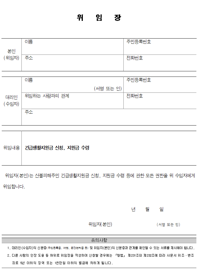 ② 위임장 서식