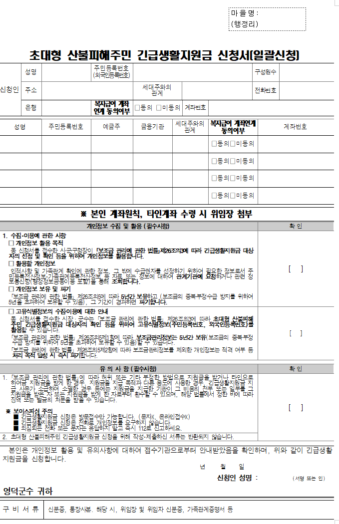 초대형 산불피해주민 긴급생활지원금 지급 공고