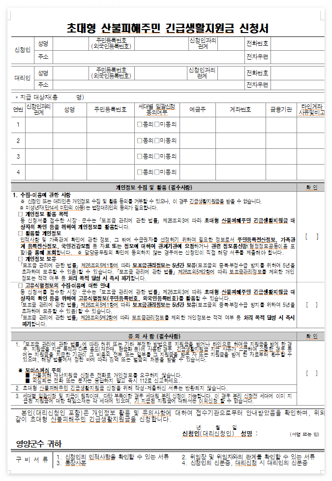 1. 산불피해 긴급생활지원금 신청안내