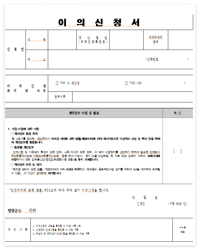 ① 읍면사무소 방문, 이의신청서 및 증빙서류 제출