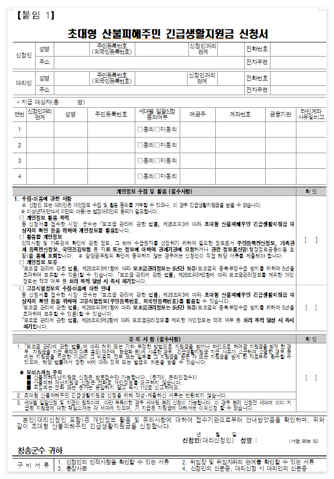 1. 청송 긴급생활지원금 지급 안내