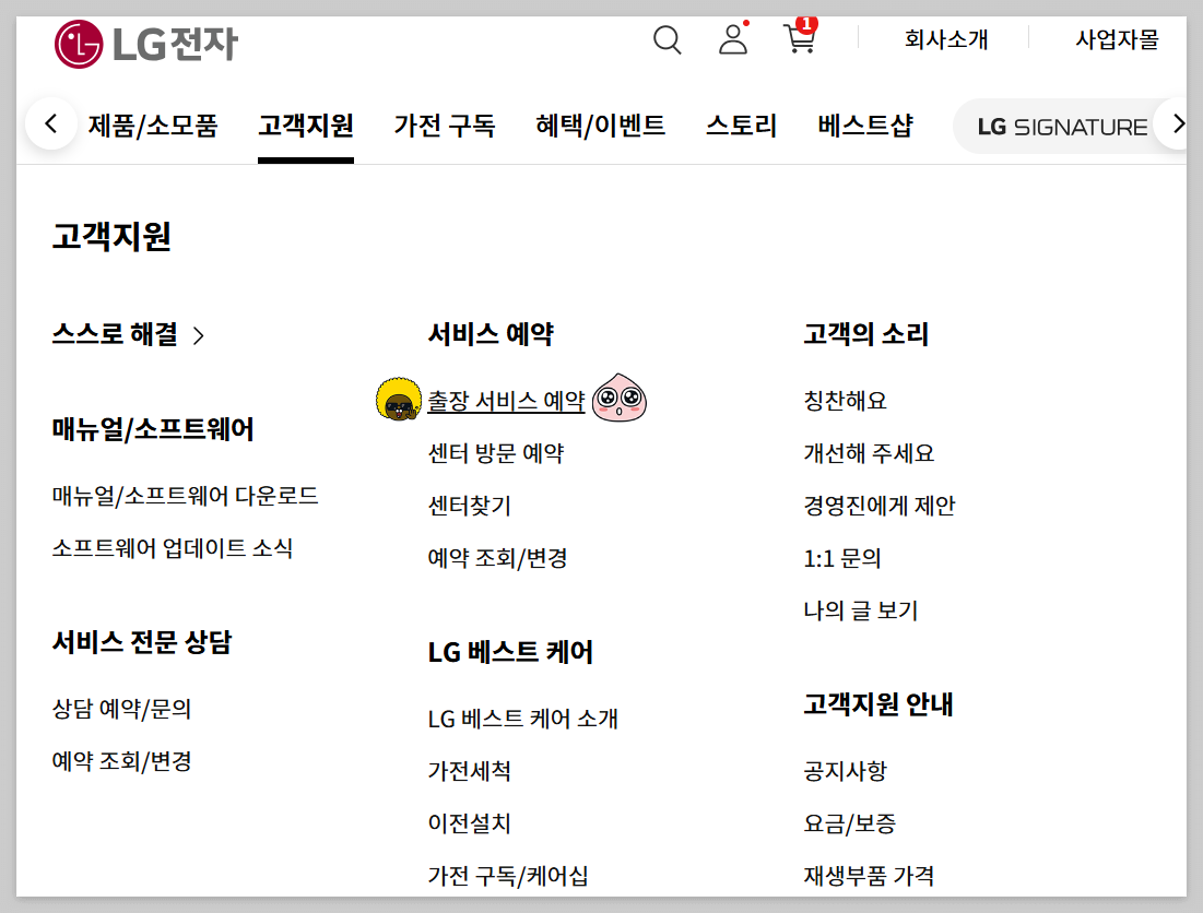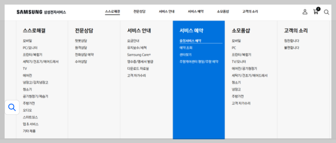 - 고객지원 - 서비스예약 - 출장 서비스 예약 선택