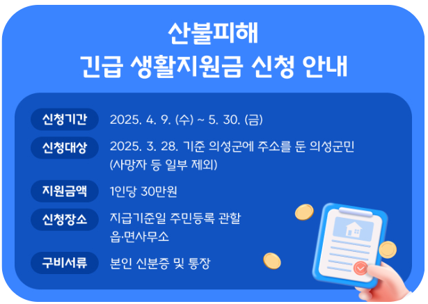 경상북도 의성군 산불 피해 긴급재난지원금 계획이 발표되었습니다.