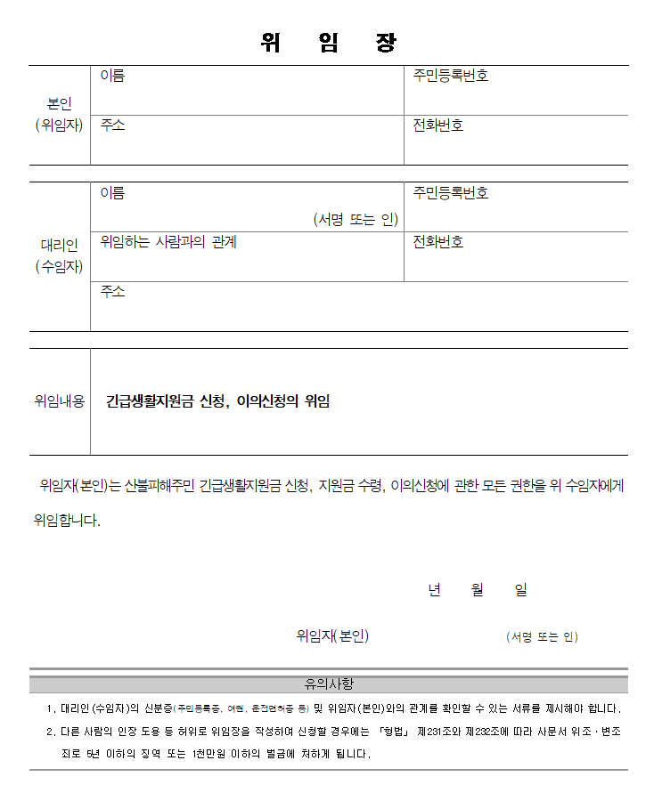 신청서와 위임장 양식도 첨부 되어 있으니 참고하시길 바랍니다.
