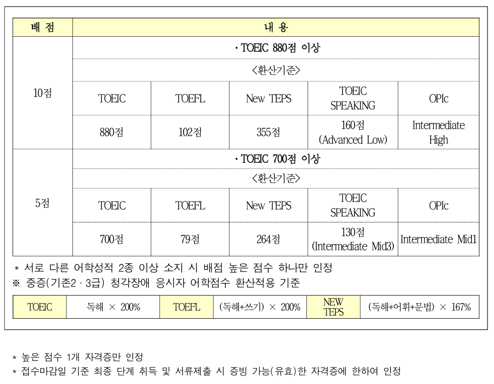 붙임 1. 어학성적 환산기준