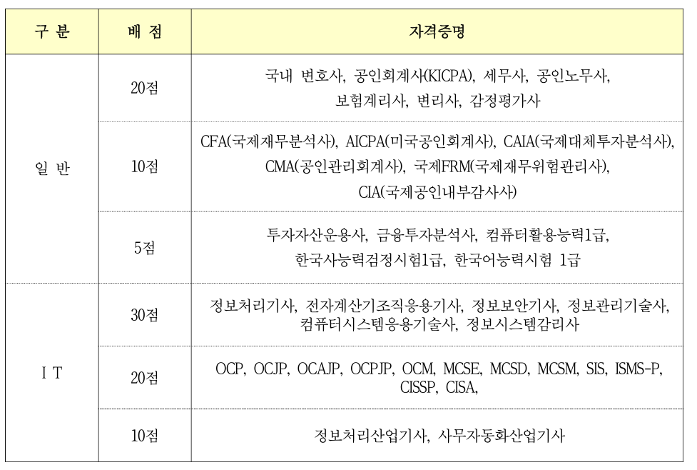 붙임2. 서류전형(역량평가) 자격증별 배점