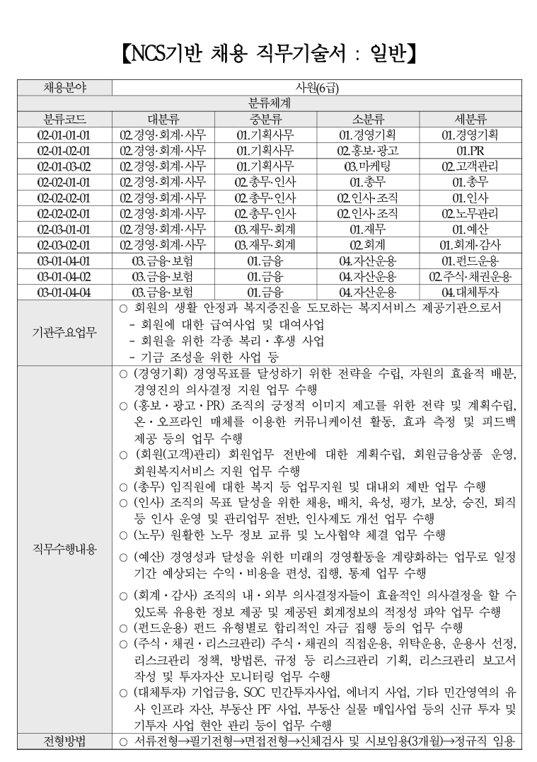 대한지방행정공제회 직무기술서