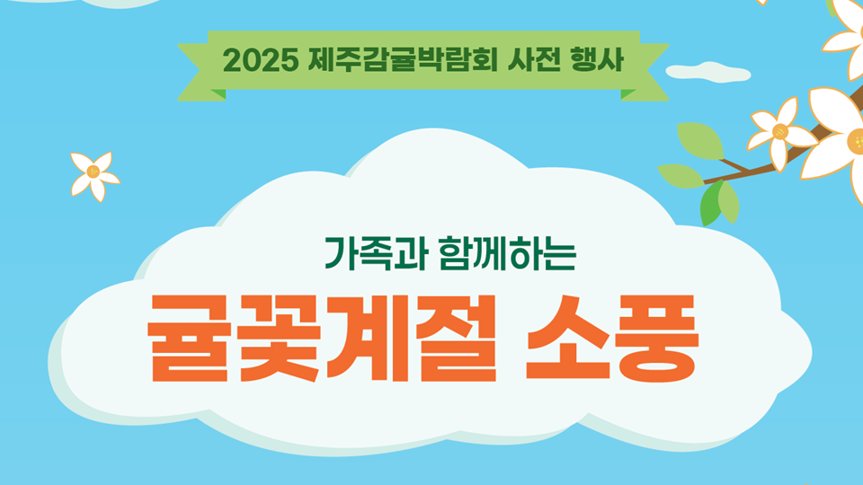 - 2025년 11월 20일부터 24일까지 약 5일간 열릴 예정인 ’2025 제주감귤박람회‘의 사전 행사입니다. 제주의 귤꽃을 보고 듣고 맛볼 수 있는 프로그램으로 구성되어 있습니다.