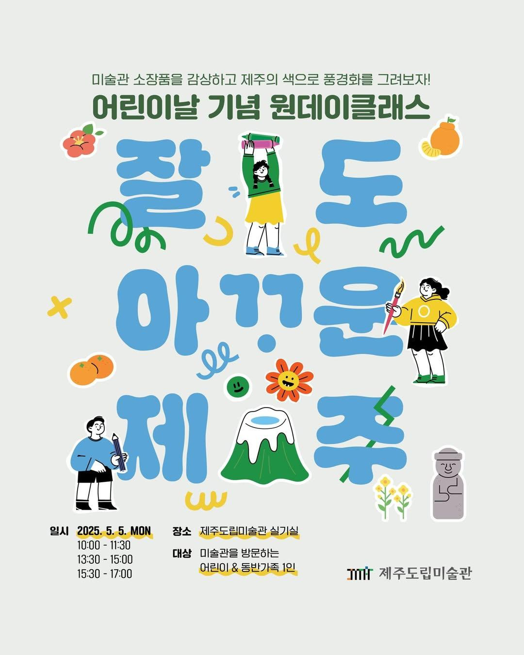 | 제주도립미술관 원데이 클래스 ’잘도 아꼬운 제주‘ | 제주시 1100로 2894-78 | 2025. 5. 5.(월) 10:00~17:00 |