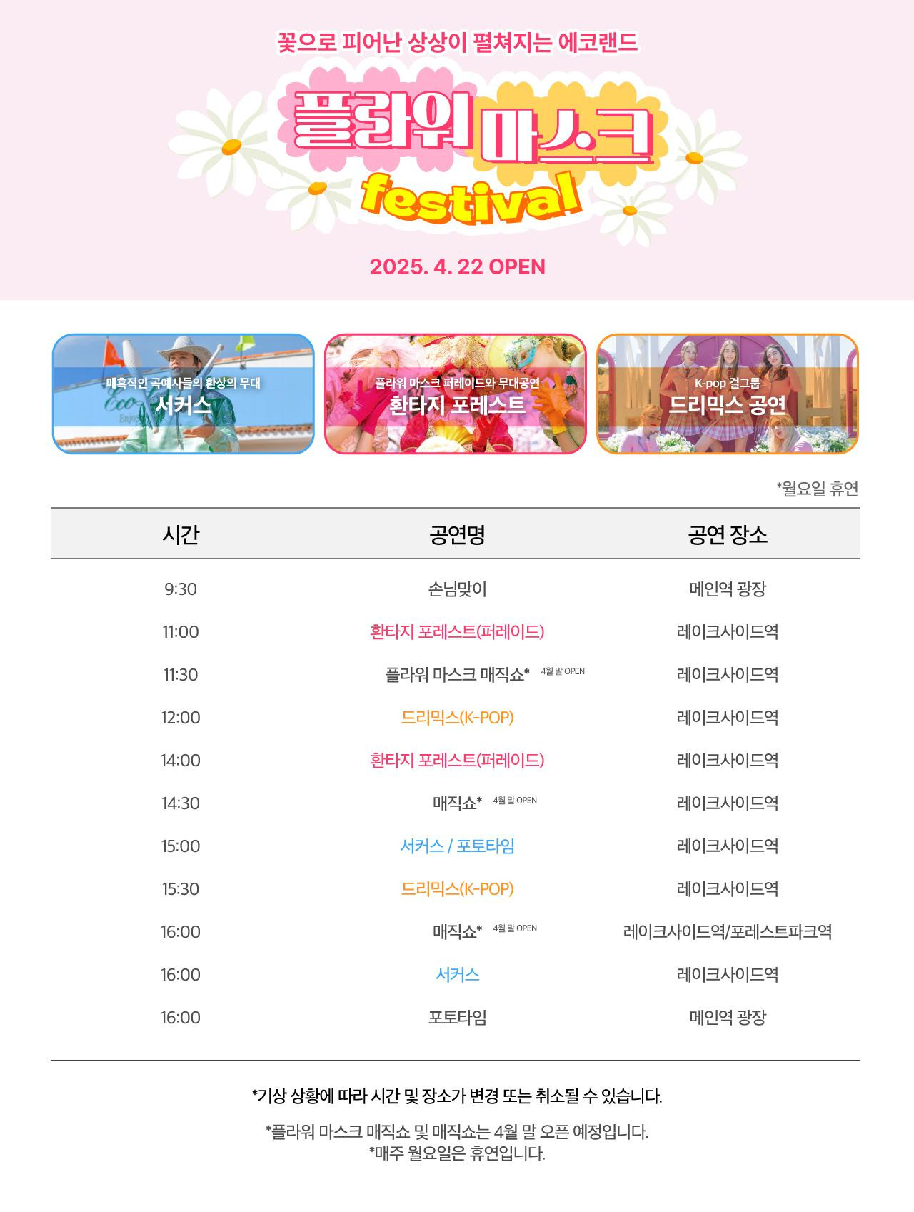 | 에코랜드 플라워 마스크 페스티벌 | 제주시 조천읍 | 2025. 4. 22.(화) ~ 6. 29.(일) |